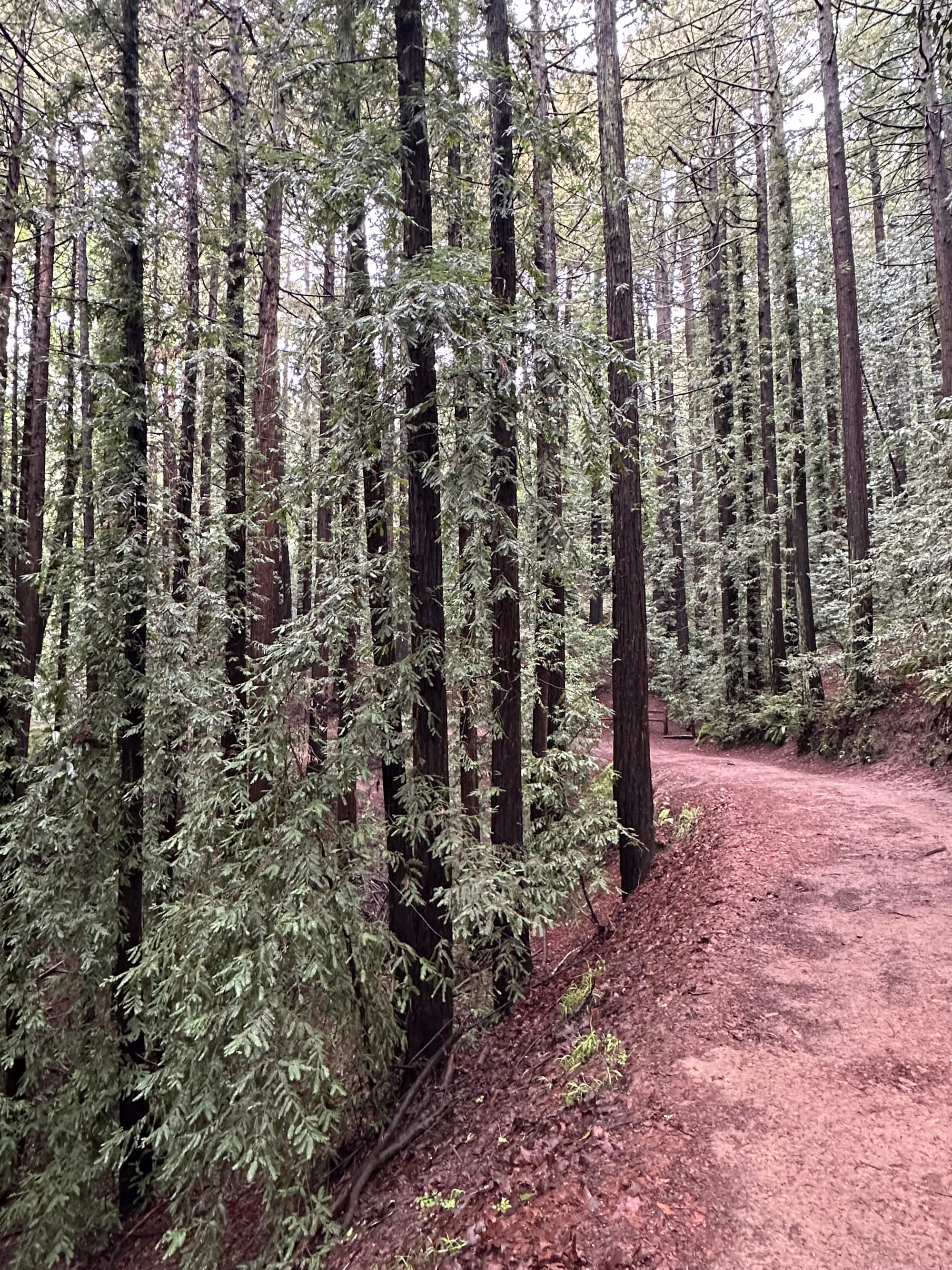 When we think of redwoods, we think of special trips to big state parks, but they're everywhere in northern california. Eucalyptus groves, too. This trail is in Oakland, 20 minutes from my home.